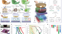 Various types of tactile sensors have been developed using Si-based micro-electro-mechanical system (MEMS) technologies. Recently, flexible tactile sensing systems have been demonstrated using elastomer composites and thin polymer film. Such flexible sensors can detect changes in contact resistance12,13, piezo-resistance14,15, piezo-electricity16,17,18, capacitance10,19,20, and triboelectricity21,22 by deformation of the sensing elements or electrodes under external stress. However, sensors based on flexible bulk elastomers suffer from high hysteresis, low sensitivity, limited sensing range, temperature-dependent displacement, and polymer swelling23,24 due to the intrinsic viscoelastic properties of elastomer composites25. To overcome these shortcomings, tactile sensors have been developed using microstructures or nanostructures, such as micropyramids19, interlocked microdomes26, and nanowires15. However, most tactile sensors are designed to achieve a trade-off between their sensitivity and their dynamic working range. Thus, highly sensitive tactile sensors have a limited dynamic range; conversely, sensors with a wide dynamic range have low sensitivity. Therefore, the development of universal tactile sensors with high sensitivity in wide working range is one of the major challenging issues for use in practical applications such as robotic skin, medical diagnostic devices, and bionic arm electronic skin (Table S1).