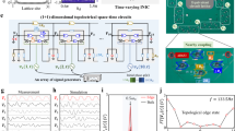 where \(\overrightarrow{E}(\overrightarrow{r},t)\) and \(\overrightarrow{H}(\overrightarrow{r},t)\) are the time harmonic electric field and time harmonic magnetic field, respectively, ε 0 and μ 0 are the permittivity and permeability in free space, respectively. \({\varepsilon }_{r}(\overrightarrow{r},t)\) and \({\mu }_{r}(\overrightarrow{r},t)\) are time- and space-dependent relative permittivity and permeability, respectively. Utilizing FDTD method20, Eqs (1) and (2) can be discretized. For 1D photonic time crystal, ∂/∂x = 0, ∂/∂y = 0, the discrete electric field and magnetic field can be written as (see Supplementary Information)