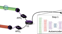 The simulation results plotted in Fig. 1(d–f) show the reconstructed images using GIDL after 10, 100 and 500 training epochs, respectively, for different measurement ratios β. From these images we can conclude that: First, as the number of iteration (epoch) increases, the DNN model is better optimized. As a consequence, the reconstructed images becomes clearer and brighter. However, when the number of epoch becomes too large, we observed over-fitting of the data, which yield bit error in the reconstructed images as evidenced by the black spots. Second, the GIDL is not very sensitive to β. The MSE values between the images in Fig. 1(f) and the corresponding ground truth images in Fig. 1(a) are all around 0.03 even when β = 0.1. This means that by using GIDL for image reconstruction, one can significantly reduce the number of measurements in the GI acquisition procedure. As a consequence, the time efficiency can be improved without sacrifice of image quality. We note that one can achieve the reduction of measurement by using the CSGI framework as well10. However, when one takes a closed look at the zoomed-in images of any of the reconstructed digits, say, digit ‘6’, in the inset of Fig. 1, it is clearly seen that the image reconstructed using CSGI is not so smooth because of the regulation, while GIDL gives much better reconstruction. This is one major difference between the images reconstructed using GIDL and CSGI.