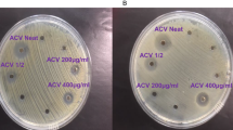 Cultures of E. coli and S. aureus were grown in nutrient media whereas C. albicans was grown in Sabourand media. All cultures were cultivated in a shaking incubator at 37 °C for 24 h overnight prior to use. Mueller hinton agar (MHA) was prepared by dissolving 38 g in 1 litre of distilled water, boiling the mixture for 1 min, after cooling and autoclaving, the media was poured into petri dishes. The plates were left to dry and subsequently stored at 37 °C. All microbial cultures were adjusted to 0.5 McFarland’s standard 1.5 × 108 CFU/ml and 4 × 106 CFU/ml of each organism used in experiments. Each microbe was swabbed evenly onto plates containing MHA. For sample addition, 100 µL of ACV at varying concentrations was added to the wells which were punched into the agar. The plates were then incubated at 37 °C for 24 h. Zones of inhibition surrounding samples were identified, photographed and measured in mm40. Experiments were repeated at least 5 times.