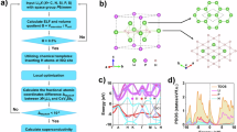 Here, N k is the number of k points used in the summation, N(E F ) is the density of states at the Fermi level, and ω qν are the phonon frequencies. The electron-phonon matrix element \({|{g}_{n{\bf{k}},m({\bf{k}}+{\bf{q}})}^{\nu }|}^{2}\) is defined by the variation in the self-consistent crystal potential. From the λ(ω) curves in Fig. 8(b), where \(\lambda (\omega )=2{\int }_{0}^{\omega }[{\alpha }^{2}F({\rm{\Omega }})/{\rm{\Omega }}]d{\rm{\Omega }}\), one finds that \(\lambda \mathrm{(100)}\simeq 0.75\) is close to \(\lambda (\infty )\simeq 0.81\), indicating that the phonon modes in the low and intermediate frequency regimes below 100 cm−1 have the dominant contribution to the electron-phonon coupling. Summarizing the electron-phonon calculations, we get electron-phonon coupling λ = 0.81 and logarithmically averaged frequency ω ln = 78.5 K. Using the Allen-Dynes formula30,31