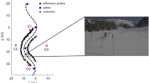 A 37 degree-of-freedom (DOF) full-body musculoskeletal model, with 80 musculotendon actuators (lower body) and 17 torque actuators (upper body)22, was used to perform the musculoskeletal simulations in OpenSim16. Each hip was modelled as a 3-DOF ball and socket. Each knee was modelled as a 1-DOF hinge, with other rotational (valgus/varus and internal/external rotation) and translational (anteroposterior and superior-inferior) movements constrained to change as a function of the knee flexion angle23. A pin joint was used to represent the ankle (talocrural) joint. The head-trunk segment was modelled as a single rigid segment, articulating with the pelvis via a 3-DOF ball and socket joint. Each upper limb was characterised by a 3-DOF ball and socket shoulder joint and single-DOF elbow and radioulnar joints. The subtalar, metatarsophalangeal, and wrist joints were locked22. The generic model was scaled to each participant’s individual anthropometry as determined during a static trial. An inverse kinematics algorithm was used to calculate joint angles by means of a weighted least-squares optimisation that minimised the difference between model and experimental marker positions24. Inverse dynamics was used to obtain the joint moments acting about each modelled DOF. Muscle forces were obtained via a static optimisation algorithm, which decomposed the joint moments into individual muscle forces by minimising the sum of muscle activations squared, taking into account the physiological force-length-velocity properties25 of the musculotendinous units. This method of muscle force estimation is computationally efficient and has been used to predict muscle forces in similar high impact movements26,27,28. Note that the maximum isometric force of each actuator was increased 3-fold from the standard model, similar to another study that investigated high impact manoeuvres26.