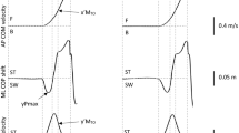 We used the same mechanical model as in a previous study to determine the stance leg stiffness along the mediolateral direction during the GI execution phase (for details on this model and related equations of motion, see Yiou et al.5). In brief, the human body was modeled as a single conic inverted pendulum which rotates around a fixed point corresponding to the stance ankle. It was considered that the COM was falling laterally under the influence of two forces: the gravity force P = mg (where m is the mass of the solid, and g is the gravitational acceleration) and an elastic restoring force T that reflects active muscular control of the movement63,64, with T = k|yM| where k is the stance leg stiffness and |yM| is the absolute value of the mediolateral COM shift, which was systematically oriented towards the swing leg (positive values) during the execution phase. The initial position and velocity of the cone corresponded to the position and velocity of the participant’s COM at toe off.