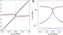 Here, Φ0 is the probability amplitude of state \(|e,0,0\rangle \) which corresponds to the situation when there is no emission in either of the cavities. Similarly, Φ1 (Φ2) is related to a photon emission in cavity 1 (2). The use of Eqs (1 and 2), enable us to construct the following coupled equations11