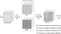 All samples were imaged at the TOMCAT beamline of the Swiss Light Source in the Paul Scherrer Institute. After positioning the detector 250 mm from the sample, we could make advantage of the produced phase-contrast enhancement. This technique is also known as propagation-based phase-contrast imaging29 and provides images with edge enhancement, essential in distinguishing features with low density contrast. By using an X-ray photon energy of 21.8 keV, an effective pixel size of 1.625 µm was obtained. 1501 projections were acquired per sample with an exposure time of 80 milliseconds/projection, generating a total sample exposure time of roughly 2 minutes. The samples were scanned with a 180° scan and with a field of view of 3.5 \(\times \) 4 mm2. Phase-retrieval was not performed.