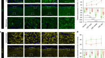 For preparation of frozen sections from non-fixed and un-decalcified hard tissues, Kawamoto’s film methods were used35,36. Briefly, samples were freeze-embedded with super cryoembedding medium (SECTION-LAB Co. Ltd., Hiroshima, Japan) and cut in thickness of 5 μm with tungsten carbide blade after mounting the adhesive film onto the sample surface. Samples were then immediately fixed with 4% paraformaldehyde (PFA) for 20 min and stained with hematoxylin and eosin. IHC analysis for type IV collagen was performed according to the previous reports37,38. Briefly, the specimens were fixed with acetone for 20 minutes, followed by incubation with primary antibodies at 4 °C overnight, after blocking with 5% normal goat serum (Life technologies) containing 1% BSA (Sigma, St Louis, MO, USA) for 60 minutes at room temperature. Monoclonal primary antibodies specific for type IV collagen (α1 [H11], α2 [H22], α3 [H31], α4 [RH42], α5 [b14], and α6 [B66]) were used. These antibodies were kind gift from Dr. Sado (Okayama Univ., Japan). All antibodies for type IV collagen were diluted to 1:100 except for H22, which was diluted to 1:50. H11-, H22-, H31-, and b14-stained sections were treated with 6 M urea in 0.1 M glycine/HCl (pH 3.5) for 10 minutes and B66 for 1 min before blocking. Primary antibodies for KRT10 (ab76318), KRT1 (ab185629) and KRT14 (ab181595) were purchased from Abcam (Cambridge, UK). After washing, the specimens were incubated with secondary antibody Alexa Fluor 488 donkey anti-rabbit IgG (Life technologies, Tokyo, Japan), Alexa Fluor 488 donkey anti-rat IgG (Life technologies) or Alexa Fluor 647 anti-rabbit for 60 minutes at room temperature. All images were taken by fluorescence microscope. Quantification of KRT10 positive area in epithelium was based on fluorescent IHC images taken with BZ-700 microscope and analyzed with a BZ analyzer (Keyence, Osaka, Japan).
