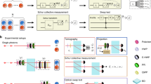 Each vector of the measurement in Eq. (1) is equivalent to the SCS state, which is a typical example of macroscopic quantum superposition (and thus sometimes regarded as “Schrödinger cat state”) showing highly nonclassical properties. Generation of such optical states have been experimentally accomplished by several groups1,2,3,4,5,6,7,8,9 for relatively small α. Especially in ref.6, generation of the approximate SCS with arbitrarily controlled {c0, c1, ϕ} is demonstrated. On the other hand, a few attempts have been made for the exploration of the measurement described by the SCS bases. It is well known that a specific projection measurement |C±〉 (i.e. c0 = 1, c1 = 0, ϕ = 0) is realized by the parity measurement of photon numbers. However, the implementation of the measurement for general {c0, c1, ϕ} remains as a challenge.