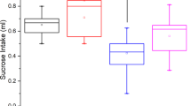 A previous study by Lombarte and co-workers with a sample size of 6 rats per group, submitted to an exercise regime, found that treatment with 15 ppm F significantly increased insulin resistance, which was ameliorated by physical exercise9. Likewise, significant differences were obtained in plasma and bone (femur) F concentrations of mice treated with 0 or 50 ppm F in the drinking water when a sample size of 6 was used11. However, power analysis based on plasma F concentration of A/J mice, in the study by Carvalho and co-workers11, suggested that a sample size of 9 mice per treatment was needed to obtain 80% power, at a significance level of 0.05, for plasma F concentrations (effect sizes 6.9 ng/ml and 97.9 ng/ml respectively for comparison of control (0 ppm) with high (50 ppm) F treatments). In view of this, 10 mice per group were used in the present study.