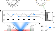 We determined the time dependence of the collective wave function by solving Eq. (10) numerically. To maintain numerical accuracy, we suppressed fast phase oscillations of the wave function by means of a self-consistently determined global gauge transformation (see Eq. (12) in Methods). This allowed us to perform Gross-Pitaevskii simulations on systems as large as 40 × 40 × 40, where length is measured in units of the lattice constant a. Since the system size is not larger than the Rayleigh length \(\pi {w}_{0}^{2}/\lambda \) of the laser beam, we neglected the spatial spreading of the waist, and assumed a simple cylindrical beam. The RF field Ω r (t) was turned on smoothly, kept constant and then turned off with an optimized pulse of length T = 400 ħ/J and turn on time τ = 60 ħ/J. This resulted in an energy window Δε of the final states encompassing a limited number of states (see the discussion below).