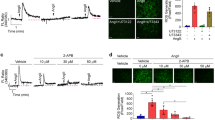 Animal procedures and methods were approved by the Animal Care and Use Committees at the University of Calgary and the University of Western Ontario and in accordance with the Canadian Institute of Health Research (CIHR) guidelines. Female Sprague–Dawley rats (10–12 weeks of age) were euthanized by CO2 asphyxiation. The brain was carefully removed and placed in cold phosphate-buffered saline (PBS, pH 7.4) solution containing (in mM): 138 NaCl, 3 KCl, 10 Na2HPO4, 2 NaH2PO4, 5 glucose, 0.1 CaCl2 and 0.1 MgSO4. Middle and posterior cerebral arteries were isolated and cut into 2–3 mm segments.