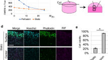 Parylene C (Speedline Technologies, USA) was used to produce the microplates because of its biocompatibility and ease of microfabrication22. The transparency property of the parylene is also useful for allowing observation of the co-cultured cells inside the 3D microstructures. Parylene microplates were made according to the previously described method12. Although microelectromechanical systems (MEMS) techniques are needed to fabricate the microplates for the cell origami technique, only the standard MEMS techniques are required. Briefly, the parylene layer (3 μm thickness) was deposited on the glass substrates with or without the alginate layer by chemical vapour deposition (LABCOTERPDS2010, Specialty Coating Systems, USA). Aluminium (Al) was evaporated (EBX-8C, ULVAC, Japan) on the top of the parylene (Supplementary Figure 1a). Al was patterned to define the region of the microplates using a photolithographic technique (Supplementary Figure 1b,c). The parts of exposed parylene were then removed by O2 plasma (10 ml/min, 25 W, RIE-10NR, SAMCO, Japan) to make the microplates (Supplementary Figure 1d).