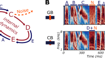 This psychoacoustic paradigm has been described previously in detail53,54. Briefly, birds were tested in an apparatus consisting of an IAC-3 sound isolation chamber (Industrial Acoustics Company, Inc., Bronx, NY) housing a small cage (23 × 25 × 16 cm) and a response panel with two light-emitting diode (LED) microswitches. In-house MATLAB software controlled Tucker-Davis hardware (Tucker-Davis Technologies, Alachua, FL). Playback was conducted using a Crown D-75 amplifier (Crown International, Inc., Elkhart, IN) used to drive an Orb full range point source speaker (Mod1) which was placed 40 cm from the bird. All stimuli were resampled at 24,414 Hz and attenuated in MATLAB such that they played at ~65 dB in the apparatus. During testing, birds received food rewards from a hole on the ground of the cage, via an automated hopper.