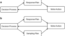 Stimuli were presented on a gamma-corrected 21-in Sony Trinitron cathode ray tube (CRT) monitor (GDM-F520) with a spatial resolution of 1280 × 1024 pixels and a refresh rate of 60 Hz. All stimuli were presented in the centre of the monitor on a mid-grey background with average luminance of 65.3 cd/m2 and with the colour 0.28, 0.30 in CIE xy coordinates – measured with a colourimeter (ColourCal Mk II, Cambridge Research Systems, Cambridge, UK). We used a chin-rest, which ensured a constant viewing distance of 60 cm. All stimuli were generated in Matlab (Version 8.4, The MathWorks Inc., Natick, MA, 2014) and all data were collected using PsychoPy18.