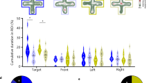 On the morning of trials (10 am–12 pm), fish acclimated to the video camera placed in front of the tank for approximately 5 min. The opaque barrier was then removed while leaving the clear barrier with the escape hole in place, and the intruder was quickly netted from his home territory and moved to the resident’s compartment. The trial ended when the intruder escaped through the hole or a maximum time limit was reached (see below), at which time the intruder was placed back into his compartment and the opaque blue barrier replaced.