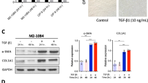 RNA, extracted from cell cultures with ReliaPrep™ RNA Tissue Miniprep System (Promega, Madison, WI, USA), was reverse transcribed with iScriptTM c-DNA Synthesis Kit (Bio-Rad Laboratories, Inc., Hercules, CA, USA) according to the manifacturer’s instructions. cDNAs were amplified by qPCR reaction using GoTaq® qPCR Master Mix (Promega, Madison, WI, USA). The following specific primer pairs were used: for L34: 5′GTCCCGAACCCCTGGTAATAG3′ and 5′GGCCCTGCTGACATGTTTCTT3′; for MMP2: 5′ATGCCGCCTTTAACTGGAG3′ and 5′GGAAAGCCAGGATCCATTTT3′; for Col1A1: 5′AGCCAGCAGATCGAGAACAT3′ and 5′TCTTGTCCTTGGGGTTCTTG3′; for Occludin: 5′AAGGTCAAAGAGAACAGAGCAAGA3′ and 5′TATTCCCTGATCCAGTCCTCCTC3′; for Snail: 5′CACTATGCCGCGCTCTTTC3′ and 5′GCTGGAAGGTAAACTCTGGATTAGA3′; for PAI-1: 5′AGTGGACTTTTCAGAGGTGGA3′ and 5′GCCGTTGAAGTAGAGGGCATT3′; for TGFβ1: 5′AAGGACCTCGGCTGGAAGTG3′ and 5′CCCGGGTTATGCTGGTTGTA3′; for E-cadherin: 5′TACGCCTGGGACTCCACCTA3′ and 5′CCAGAAACGGAGGCCTGAT3′; for TGFβRI: 5′AACTTCCAACTACTGGCCCT3′ and 5′GGTGAATGACAGTGCGGTTG3′ for HDAC1: 5′CATCGCTGTGAATTGGGCTG3′ and 5′CCCTCTGGTGATACTTTAGCAGT3′. Relative amounts, obtained with 2(−ΔCt) method, were normalized with respect to the housekeeping gene L34. Statistical significance was determined with a t-test with GraphPad Prism version 5.0 (La Jolla, CA, USA). Differences were considered significant at P < 0.05. Values are reported in the graphs.