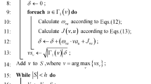 These small clusters are not the final communities, on the contrary, one community can be comprised of several such clusters. Therefore, we take the small clusters as initial communities, and function ‘merge()’ is responsible for merging some of the communities to construct the resulting community structure. In pursuit of efficiency, we borrowed the idea from FastQ15 algorithm, and employed the similar strategy to join a pair of communities whose merge can lead to the largest modularity increment in each iteration when we implemented the function. According to ref.15, the increment of modularity by joining communities C i and C j is \({\rm{\Delta }}{Q}_{ij}=2({e}_{ij}-{a}_{i}{a}_{j})\), where e ij is the proportion of inter-edges between C i and C j to total edges in the network, a i and a j are the ratio of edges incident to vertices located in C i and C j to total edges in the network, respectively, i.e., the modularity increment can be calculated quickly. The pseudo-code of the merge procedure is listed in Algorithm 3.