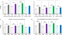 With psilocybin having potent serotonergic mechanisms43, these data support and extend those of Crockett et al.21,22,23, who reported serotonergic effects on the rejection of 30% offers in the UG. While the pharmacological profile of MDMA is broader, its largest effects are serotonergic29,32. Together, these results provide support for the interpretation that serotonin partially modulates UG rejection behaviour, notwithstanding other potential pharmacological mechanisms with MDMA (discussed further below).
