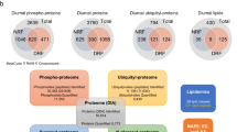 Per2m/m mice with an ICR background and wild-type mice of the same strain were housed six per cage in a temperature-controlled room (24 ± 1 °C) under a 12-h light/dark cycle (ZT0, light on; ZT12 light off) with food and water ad libitum. In mice housed under constant dark conditions, the circadian time (CT) was used instead of ZT; and CT0 was characterized by the beginning of the subjective light phase, while CT12 was defined as the beginning of the subjective dark phase. During the dark period, a dim red light was used to aid animal treatment. Mouse embryonic fibroblasts were prepared by standard techniques47 from the litter-mate embryos of Per2m/m or wild-type mice, and cells were maintained in Dulbecco’s modified Eagle’s medium (DMEM, Sigma-Aldrich, St. Louis, MO) supplemented with 10% fetal bovine serum (FBS) and 0.5% penicillin-streptomycin at 37 °C in a humidified 5% CO2 atmosphere. All animal experiments followed the Law for the Humane Treatment and Management of Animals and other related laws and regulations. All the experiments were conducted under a protocol approved by the internal committee for animal experiment in Kyushu University.