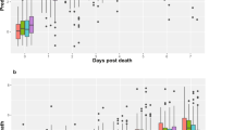 Typical spectra collected from the head and thorax of Ae. albopictus are shown in Fig. 1 and regression coefficient plots used for predicting the age of female Ae. albopictus into various age groups are shown in Fig. 2. The spectrometer and fibre-optic probe used in this study have improvements in the light source, optics, electronics, and fibre material resulting to an improved spectra with less noise compared to those reported in previous studies21,23,24,25,26,28,30.