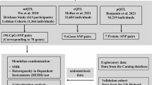 Blood eQTLs from the Consortium for the Architecture of Gene expression (CAGE) dataset77, consisting of 11,204 cis-eQTLs identified across 2,765 individuals, were used to determine overlap with independent endometrial eQTLs. Additional eQTLs identified in blood (n = 338), were downloaded from GTEx to determine overlap with endometrial eQTLs. eQTLs overlapped if they had the same probe and associated SNP or if the SNP associated with the probe in the CAGE/GTEx dataset had a minimum linkage disequilibrium (LD) r2 > 0.7 with the endometrial SNP based on the 1000 Genome phase 3 reference panel.