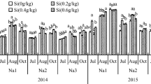 Both August and October samples of G. uralensis were dried in an oven (65 °C for 48 h), then the dry weight of August samples was measured to calculate aboveground biomass per pot. Root samples were rinsed with distilled water and then dried at 75 °C for 48 h to measure their dry weight per pot. C, N, and P concentrations were analyzed after the samples were finely ground in a Wiley mill and passed through a 40-mesh screen. C concentration was measured with the K2MnO4 volume method. N concentration was analyzed by the Kjeldahl acid–digestion method, using an Alpkem AutoAnalyzer (Kjektec System 2300 Distilling Unit, Sweden). P concentration was determined colorimetrically at 700 nm after reacting with a molybdenum antimony solution. The nutrient concentration of senescing leaves was used to evaluate nutrient resorption proficiency (RP) because high nutrient concentration in the senescing leaves of a plant means that a plant has a low RP. In the present study, N resorption proficiency and P resorption proficiency are abbreviated as NRP and PRP, respectively.
