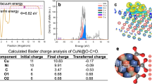 The photocatalytic activity of as-prepared photocatalysts was evaluated via the degradation of methyl orange (MO) or phenol in aqueous solution. A solar simulator (300 W Xe lamp, MircoSolar300, PerfectLight) with a 420 nm cut-off filter provides the visible-light irradiation. The lamp was located at 15 cm away from the reaction solution. 100 mg catalyst and 100 ml of aqueous solution containing 4 mg L−1 MO or phenol were placed in a glass reactor with continuous stirring at 500 rpm. Prior to irradiation, the pollutant solutions suspended with photocatalysts were stirred in absence of light for 30 min (MO) or 2 h (phenol) to attain the equilibrium adsorption/desorption between photocatalyst powders and organic molecules. During the reaction, the temperature was maintained at 25 ± 1 °C using cooling water. For each given irradiation time, about 3 mL of the reacted solution was withdrawn and centrifuged at 10,000 rpm for 10 min to remove the photocatalyst. Then, the concentration of the centrifuged solution was determined by a UV-vis-NIR spectrophotometer, measuring the maximum absorption of MO at 464 nm and phenol at 270 nm.