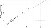All lambs were ventilated for 60 min using the same strategy. Previous studies of this animal model have demonstrated alterations in gene expression and histological evidence of VILI after 15–30 min of ventilation59,60,61. Initially a sustained lung inflation was delivered at 40 cmH2O using a Neopuff Infant Resuscitator (Fisher Paykel Healthcare, Auckland, New Zealand) as per our previous reports10,51,60. Thereafter the lung was supported with positive pressure ventilation (SLE5000, SLE UK Ltd, South Croyden UK) in a volume-targeted ventilation mode (positive end-expiratory pressure 8 cmH2O, maximum positive inspiratory pressure 35 cmH2O, inspiratory time 0.4 s, initial rate 60 inflations per minute and initial tidal volume 7 ml/kg). To monitor physiological stability, preductal peripheral oxygen saturation (SpO2), heart rate, arterial blood pressure, and rectal temperature (HP48S monitor, Hewlett Packard) were recorded continuously from birth, and arterial blood gas analysis (pH, BE, PaO2, PaCO2) performed at 5 min of age and then 15 minutely from the first inflation. Parameters of oxygenation, including oxygenation index (OI) and alveolar-arterial oxygen difference (AaDO2), were calculated using standard formulae. FiO2, tidal volume (5.5 to 8 ml/kg) and ventilator rate (40 to 60) were adjusted as appropriate using a standardized protocol to maintain SpO2 between 88–95% and partial arterial pressure of carbon dioxide between 45–60 mmHg. At 60 minutes, all lambs were ventilated with an FiO2 of 1.0 for 3 min and disconnected to atmosphere for 2 min. An in vivo super syringe pressure–volume (PV) curve was obtained using a maximum pressure of 35 cmH2O to determine static respiratory system compliance (ml/kg/cmH2O). At the end of the study period all lambs received a lethal IV dose of pentobarbitone.