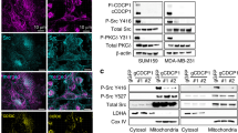 ATP levels were determined with CellTiter-Glo Luminescent Cell Viability Assay kit (Promega, USA) according to the manufacturer’s specifications. Intracellular NAD(P)H levels were measured by auto-fluorescence using specific excitation and emission wavelengths of 340/428 nm as described26. Mitochondrial membrane potential (∆Ψm) and intracellular ROS levels in intact cells were determined by flow cytometry using the potentiometric probe tetramethylrhodamine methyl ester (TMRM, Molecular Probe) and dihydroethidium (DHE) probe, respectively. Details are provided in the supplementary document.