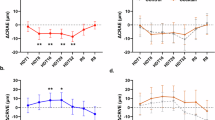 The 48 measured channels of the CW-NIRS device were divided into 8 sections to represent regional HbT and DHbT (as shown in Fig. 2C). Prior to the quantitative analysis, we validated that the transient response of the HbT and DHbT of the entire channels exhibited consistent patterns within each subject, offering a means to measure individual CA characteristics, as in a previous investigation14. The signals were grand-averaged for each section, excluding those from rejected channels in order to ensure signal integrity. The channels in each section were assigned as follows: R1 channels: 17, 18, 21, and 22; R2 channels: 1, 2, 3, 4, 5, 6, 7, and 8; R3 channels: 25, 26, 29, and 30; R4 channels: 9, 10, 11, 12, 13, 14, 15, and 16; L1 channels: 19, 20, 23, and 24; L2 channels: 33, 34, 35, 36, 37, 38, 39, and 40; L3 channels: 27, 28, 31, and 32; L4 channels: 41, 42, 43, 44, 45, 46, 47, and 48. Considering the individual differences in forehead size, more channels were assigned for sections R2, R4, L2, and L4; the majority of borderline channels located in the hairy area, left and right temples of the forehead, tended to have low SNR due to poor scalp-optical probe coupling. The HbT and DHbT responses were regionally grand-averaged, and Max SV, Min SV, Max PT, Min PT, DT, IT, and RT values were then obtained for each subject.
