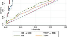 To compare the characteristics of study participants, the t test was used for continuous variables and χ2 test was used for categorical variables. Pearson correlation coefficients were estimated among MBI, DEQS, TFBUT, and Schirmer test Ι . A ROC analysis was conducted to examine the diagnostic efficacy of MBI for DED. The ROC curve was plotted by computing the sensitivity and specificity using each symmetric value of the rating variable as a possible cutoff point. A point was plotted on the graph for each of the cutoff points; these plotted points were joined by straight lines to form the ROC curve, and the AUC was estimated using the trapezoidal rule. To determine the optimal cutoff value of MBI for detecting DED, the point where sensitivity and specificity were maximized was identified. Data are presented as means ± standard deviations (SDs) or proportions. Statistical analyses were performed using STATA version 14 (Stata Corp, Texas). A P < 0.05 was considered significant.