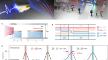 where Dnet (ps/nm) is the net cavity dispersion, \({\rm{\Delta }}\lambda \) is the difference in center wavelengths, \({\rm{\Delta }}{n}_{ave}\) is the average birefringence, and l is the cavity length. When there is no average birefringence between the two pulse trains and the oscillator is wavelength multiplexed with a filtering mechanism, as in the recent demonstrations of ASOPS-THz-TDS and dual THz comb heterodyning30,37, very small sampling steps may only be accomplished by cavity dispersion management since there is a practical limit to repetition rate. By contrast, bidirectional schemes and polarization multiplexed systems do not have this limitation since they do not constrain the difference in center wavelength, and polarization multiplexed systems have the additional ability to offset group dispersion delay with birefringence29,40.