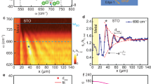 The samples were mounted on the cold finger of a He-flow cryostat. The reference was a gold mirror placed above the sample and aligned parallel to it by a laser beam. Unpolarized radiation was extracted from a globar source and modulated by a commercial, Bruker 66 V, Michelson interferometer. Infrared radiation could illuminate either the sample or the mirror at exactly normal incidence, by use of a home-made reflectivity setup based on a beamsplitter and a parabolic mirror. The incident radiation passed through a wire-grid polarizer that could be remotely rotated and the reflected radiation was collected by a liquid-helium cooled bolometer in the far infrared, by a nitrogen-cooled Mercury-Cadmium-Tellurium detector in the mid infrared. The reflectivities \({R}_{\parallel }(\omega )\) and R⊥(ω), as measured with the electric field parallel and orthogonal to the stripes, respectively, were thus obtained. In a preliminary experiment, \({R}_{\parallel }(\omega )\) and R⊥(ω) were measured on the uniform sample A to check that they were identical (see Fig. 2). They were then fit by employing the usual formulas for a three-layer system21,22 (vacuum-SRO-STO) where one uses the Drude-Lorentz dielectric functions