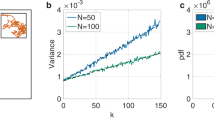 where dij(t) = |ri(t) − rj(t)| is the distance between the particles pi and pj at time t. Figure 4 shows that these two quantities display diffusive behavior for long times, as they asymptotically behave as tα with α ≈ 1/2 (panels a, b, d and e in Fig. 4). Therefore, long-range interactions do not completely prevent the expansion of the system, but are able to significantly slow it down. To show that this is indeed the case, we report in Fig. 4(c,f) the diffusion coefficients associated to 〈Δd(t)〉κ and 〈Δdnn(t)〉κ. The diffusion coefficient is defined as \(D=\mathop{\mathrm{lim}}\limits_{t\to \infty }{\langle {t}^{-\alpha }{\rm{\Delta }}d(t)\rangle }_{\kappa }\) (similarly for 〈Δdnn(t)〉κ). It is apparent from Fig. 4 that the diffusion coefficient can decrease several orders of magnitude by increasing κ, allowing the group to remain cohesive for long periods of time.