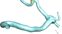 Where P and \(\overrightarrow{u}\) represent pressure and velocity vectors, respectively. μ is the dynamical viscosity of blood, and ∇ and Δ represent, respectively, the Hamiltonian and Laplace operators. The inlet parameter uses the fully developed speed boundary conditions given by the User Defined Function (UDF) with an average velocity of 0.12 m/s11 (Reynolds number = 900, laminar flow), and the outlet of the aorta and branch was given 11500 Pa and 11000 Pa, respectively12. The blood parameters were set to a viscosity of 0.035 Pa·s and a density of 1050 kg/m3 13. The blood was a uniform incompressible Newtonian viscous fluid14. The walls of the blood vessel and stent were set to a non-slip condition.