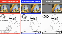 We patched subject’s dominant eye. To determine the dominant eye, we used the test described by Miles29. The subjects formed a peephole with their hands, stretched their peephole at arm’ length and located a target stimulus in the center of the peephole with both eyes open. They then alternately closed one eye and another and identified their dominant eye by determining when the object had most deviated from the center of the peephole.
