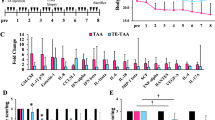 Cygb-TG and wild type mice, 10 mice per group, were given an i.p. injection of an escalating dose of TAA twice a week62. For the first week, mice received an i.p. injection of 50 mg/kg TAA for the first dose and then 100 mg/kg TAA for the second dose; for weeks 2–3, they received 200 mg/kg twice a week; for weeks 4–5, they received 300 mg/kg twice a week; and for weeks 6–10, they received 400 mg/kg twice a week. Mice were sacrificed 2 days after the last TAA application. Healthy controls were given only an adequate saline solution by i.p. injection.