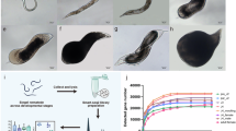 We used inbred strains of the free-living nematodes Auanema rhodensis APS4, A. freiburgensis APS710, and Pristionchus pacificus PS312 derivative “97”40. These strains were maintained in the laboratory on nematode growth medium (NGM) agar plates seeded with the streptomycin-resistant Escherichia coli OP50-1 strain and cultured at 20 °C by standard procedures for C. elegans41. Microbial contamination was prevented by adding 200 µg/mL nystatin and 200 µg/mL streptomycin to the NGM42.