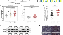 Clinical microarray tissues from 128 gastric cancer patients were retrieved from the tissue bank of the Prince of Wales Hospital (Hong Kong). Use of these tissues had been approved by the Joint Chinese University of Hong Kong—New Territories East Cluster Clinical Research Ethics Committee. A total of 41 fresh gastric cancer and adjacent non-cancerous tumor tissue samples were collected from the tissue bank of Yijishan Hospital of Wannan Medical College (Wuhu, Anhui Province, China). All procedures using human tissue samples were performed in accordance with the relevant guidelines and regulations of the above institutions and informed consent for study participation were obtained from all patients involved.