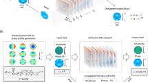 The utility and extension of DOPC systems, however, have been practically throttled largely due to two critical requirements in system design and operation29. First, achieving accurate pixel-to-pixel match between the digital camera and the SLM is complicated and experience demanding; the camera and the SLM should be conjugated exactly with each other, and the mismatch must be limited within one pixel25 in six dimensions, i.e., the three displacement axes (\({\rm{\Delta }}x,\,{\rm{\Delta }}y,\,{\rm{\Delta }}z\)) and the three angle axes (\({\rm{\Delta }}{\beta }_{x},\,{\rm{\Delta }}{\beta }_{y},\,{\rm{\Delta }}{\beta }_{z}\))29. In addition, the flatness of SLM surface poses substantial influence to the focusing performance, such as the peak-to-background ratio (PBR) and the full-width of half maximum (FWHM) of the focal spot29. These factors need to be tuned carefully in order to achieving robust performance, for which iterative calibration methods29,30 have been proposed by Jang et al. and Azimipour et al., respectively. The implementation of these two methods, however, is time consuming (several minutes or even longer) as hundreds or even thousands of iterations are needed, and this calibration time length increases proportionally to the number of independently-calibrated element on the SLM. Moreover, during the experiment when the system or the environment alters (e.g. strong air flow or accidental bumping to the optical table), the effect of the sought curvature compensation, and hence the focusing performance, may reduce considerably. In this case, an extended recalibration is inevitable, which interrupts or further slows down the experiment. On the other hand, to record the phase wavefront of the sample beam, an in-line or off-axis phase-shifting holography are needed25,31. In the in-line setting, an electro-optic modulator (EOM) is used to execute a four-phase digital holographic method to retrieve phase25. Note that using the EOM requires an accurate pure phase modulation without amplitude modulation in the context, posing an extra burden to the optical system which has already been quite complicated for many researchers. In the off-axis setting, the distance between the digital camera and the SLM needs to be quite large in order to spatially separate the original and conjugated beams. The off-axis angle limitation brings extra complexity to the alignment, and the extended optical path length increases the system instability. In addition, some high frequency information may be lost due to the low utilization levels of the spatial bandwidth32,33.