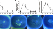 Corneal haze is a common complication following CXL that decreases the transparency of the tissue and thus would limit the visual benefit of a biological inlay35. Haze was present in the CXL treated inlays, that decreased from grade 3.17 ± 0.75 at 1 week to grade 0.83 ± 0.26 at 12 weeks (Fig. S2A). Furthermore, the IVCM revealed keratocyte apoptosis seen by lower keratocyte cell count in CXL treated inlays than in untreated inlays that is consistent with previous studies of CXL in human corneas36,37. Increased keratocyte intensity was observed following CXL, likely due to the presence of activated keratocytes37 that may contribute to the CXL-associated corneal haze38. The postoperative regime included topical 0.3% tobramycin and 0.1% dexamethasone four times daily for 1 week in all groups. However, the current study suggests that a low dose topical dexamethasone is recommended for a longer postoperative period, to reduce the postoperative haze formation39.