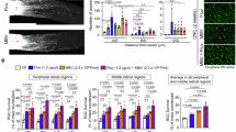 This study’s in vivo results compliment and extend previous studies documenting RGC neuroprotection in both trauma and disease models. Similar to acute ischemia, optic nerve crush (ONC) induces rapid RGC death over the first two weeks post injury followed by slower progressive RGC loss, consistent with the activation of similar pro-apoptotic, injury-signaling pathways in both models. After ONC, RGCs have been neuroprotected to varying degrees by pro-inflammatory stumulii36,37, or modulating the intrinsic growth ability of RGC axons alone17,38 or in combination with extrinsic factors39,40,41. Similarily, progressive RGC death and axon degeneration can be slowed or even prevented in induced and genetic glaucoma models by acetylcholine receptor agonists42,43 or phosphodiesterase inhibitors44. However, although ONC and induced or genetic glaucoma models, like the DBA/2J mouse, mimic many features of ocular traumas or diseases, these models are generally not relevant clinically since they do not mimic typical ocular trauma or disease etiologies45. Moreover, many of the experimental interventions are not readily translatable or have not been as neuroprotective in humans as in rodents46. In contrast to the above studies, the acute ischemia model used in this study mimics acute arterial occlusion seen clinically in humans, which is also characterized by local ischemia-reperfusion, secondary trauma, progressive neurodegeneration, and permanent vision loss.