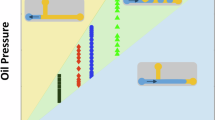 Drop Shape Analyzer (DSA 100, Kruss) was used to measure the static contact angle of water, mineral oil and FC-40 with polydimethylsiloxane (PDMS) channel surface when air is surrounding the fluid (Fig. 3). The static contact angle is measured to be 108°, 47° and 22° for water, mineral oil and FC-40, respectively. However, the dynamic contact angle may be subject to changes when air is not the surrounding fluid. Figure 6a and SV6 show the presence of a thin oil film between the water droplet and fabricated microchannel which increases the nominal contact angle of the water droplet.