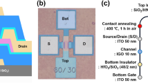 Oh, S. et al. Comparison of Top-Gate and Bottom-Gate Amorphous InGaZnO Thin-film Transistors with the Same SiO2/a-InGaZnO/SiO2 Stack. IEEE Electr. Device Lett. 35, 1037–1039 (2014).