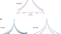 Sequentially, the curve obtained for the expected behavior of bulk water via Equation (2) was adjusted to the data from the TC below 0.7 Å−1 by a nonlinear fitting procedure. Hence, the curve describing the water dynamics in the TC was obtained with DTC = 2.21 ± 0.11 × 10−9 m2/s and τ0-TC = 9.09 ± 0.62 ps. While the diffusion coefficient, DTC, is comparable to the one expected for bulk water, the significantly higher residence time shows that the H-bond network in this water population is considerably disturbed. The same is true for the NTC, where a rotational relaxation time of about 67 ± 3 ps can be extracted (\({\tau }_{{rotation}}\,\approx \,2\hslash /{{\rm{\Gamma }}}_{r}\)23) by a linear fitting as presented in Fig. 6 by the red dotted line. In both cases, the error bar depicts the standard deviation of the HWHM value determined by the fit. The comparison clearly demonstrates that the water structural network in the TC differs from the one present in the NTC and that there is higher mobility freedom for the water in the TC.