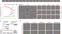 We extracted a binary mask of each cell from the video data using Canny edge detection, thresholding, and binary closing and filling. The centroid of each mask was extracted to track cell movement. Overlapping masks from multiple cells were discarded in order to avoid unwanted contact effects, such as distortions through contact pressure and cell-cell adhesion. For each binary mask, the coordinates with respect to the centroid of 64 points around the perimeter were encoded in a complex number, with each shape therefore recorded as a 64 dimensional vector of the form S = x + iy. These vectors were passed through a fast Fourier transform in order to create Fourier shape descriptors. Principal component analysis was performed on the power spectra (with the power spectrum P(f) = |s(f)|2 for the frequency-domain signal s(f)) to find the dominant modes of variation. This approach is superior to simple descriptors such as circularity and elongation, as key directions of variability within the high-dimensional shape data cannot be known a-priori. As we have previously reported13, 90% of Dictyostelium shape variation can be accounted for using the first three principal components (PCs), corresponding to the degree of cell elongation (PC 1), pseudopod splitting (PC 2) and polarization in the shape (PC 3) (Fig. 1B), with around 85% of variability accounted for in just two, and 80% in one.