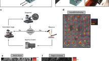 First, the possible areas of interests for biomechanical profiling with the STFN were identified, in consultation with the pathologists, for each specimen studied. The initial diagnosis and relevant medical data were kept in a blinded secured database for reference. Measurements were taken within one hour after surgical removal while held in an environmentally controlled storage unit at 4 C to prevent sample degradation as reported previously29. Typically, thyroid samples were then placed on our custom sample holder (Fig. 2a) where the sample was mapped into topographic sections using the holder and a mesh grid. Assigned reference ID and a digitally scanned image for each sample were recorded in a secured database for future reference. The sample holder with the thyroid specimen was then placed in a normal position with the path of the STFN measurement apparatus, allowing for approximately 1 cm of free translation before contact of the needle with the sample. The initial 1 cm data was used for zero-force calibration and determining signal-to-noise ratio.