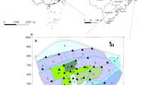 Based on the neutrality tests for C. vestalis, c3m-based Tajima’s D and Fu’s Fs statistics also had significantly negative values (Tajima’s D = −1.747, P < 0.05; Fu’s Fs = −10.475, P < 0.001) when all sampled individuals taken as one group. In the defined clusters, only Lineage 1 showed significantly negative values of Tajima’s D (D = −2.323, P < 0.01) and Fu’s Fs (Fs = −23.426, P < 0.001), suggesting a recent expansion event of the C. vestalis populations. No population expansion events could be inferred in Lineage 2 (Tajima’s D = −1.421, P > 0.05; and Fu’s Fs = −3.066, (0.01 < P < 0.05)) and Lineage 3 (Tajima’s D = −1.133, P > 0.05; and Fu’s Fs = −1.362, P > 0.05). The c3m-based mismatch distribution was multimodal when all sampled individuals were considered as one group, but the three defined lineages exhibited unimodal distributions (Fig. 4a2–a5).