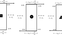 where A is the area of the copper pan, the material properties are given in Table 2, and the measured temperature values from Table 1 of the theoretical expected temperature (Tcond) and the temperature of the upward and downward drafts (\({T}_{{P}_{hot}}\) and \({T}_{{P}_{cold}}\)). The resulting values of all the temperatures are listed for both the thicknesses in Table 1 and plotted as a function of applied power in Fig. 7. The critical Rayleigh Number for structures to emerge is 1708 and for experiments beyond this critical value (see Table 1 last column, after third row), the theoretical conduction temperature is close to the weighted average of the hot and cold plume temperatures denoted by, \({T}_{{P}_{hot}}\) and \({T}_{{P}_{cold}}\). In the inset of Fig. 7, the variance of the plume temperatures about the conduction temperature (\({T}_{cond}+\varepsilon \) and \({T}_{cond}-\varepsilon \)) as a function of the applied power is shown. Interestingly, the nature of this variation does not follow a linear relationship, but rather oscillates above and below Tcond almost anti-symmetrically. Although macroscopically the system is at steady-state, and so time-invariant, the spatial regions corresponding to \({T}_{{P}_{hot}}\) and \({T}_{{P}_{cold}}\), can be thought of as separate local equilibrium-like regions coexisting with each other.