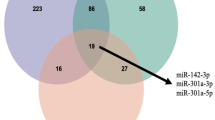 The normality of distributions of all key variables were assessed. Students’ t-test and one-way analysis of variance were used for continuous values with normal distribution. Categorical values were assessed using a Chi-square test. Correlation coefficients (r) were estimated using Spearman’s rank tests and Pearson’s correlation analysis. In addition, receiver operating characteristics (ROC) were used to assess the specificity and sensitivity of the regression models with inclusion of the associated miRNAs. All tests were performed using SPSS version 22.0 (SPSSInc, Chicago, IL, USA). A p value < 0.05 was considered significant. Correction for multiple testing was undertaken according to the Benjamini-Hochberg approach26.