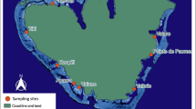 Fieldwork was further conducted in the western Indian Ocean at St. Joseph atoll (05°26′S, 53°20′E) in the Republic of Seychelles. St. Joseph is a near-pristine and non-inhabited atoll that offers shallow, protected areas for at least two species of young sharks13. Juvenile C. melanopterus were captured with gillnets (20.0 m × 1.5 m, 5.0 cm mesh) during the parturition months (October – December and March – April) in 2014/2015, 2015/2016 and 2016/2017. Captured C. melanopterus were immediately removed from the net, and handling time was kept to a minimum (<7 min.) to avoid excessive capture-related stress56. Sharks were internally tagged using PIT tags (Biomark®) to allow recaptured sharks to be identified. The LPC, girth, USS, and MTB were measured for each shark, and gastric lavage was subsequently conducted using a sub-sample of sharks following Moorea’s protocol. All sharks were released at site within minutes of capture. Temperatures were recorded every fifteen minutes during parturition season with stationary Hobo® temperature loggers (U22-001, Onset Computer Corporation, Bourne, MA, USA) distributed across the area surveyed.